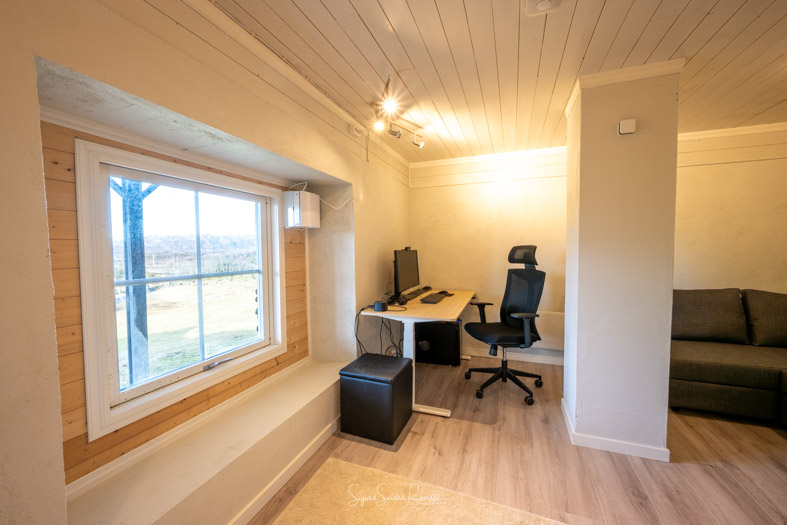 Built in 2012 the house sits on the foundations of the original farmhouse. There are 2 floors with a total living space of about 125m2. On the main floor you will find 4 bedrooms, a bathroom, a spacious living room and kitchen with dining area. There is also a large accessible westwards facing balcony. In the cellar you will find a cozy second living room and an office space.